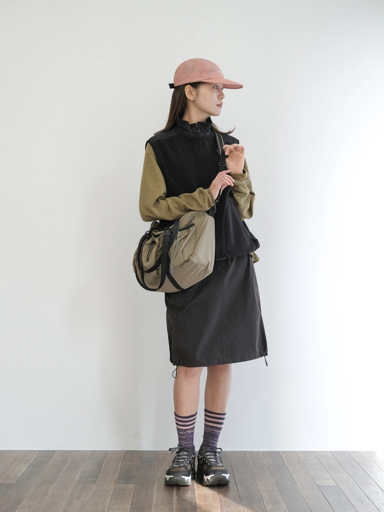 裾にもストリングを配し、シルエットの調整が可能。