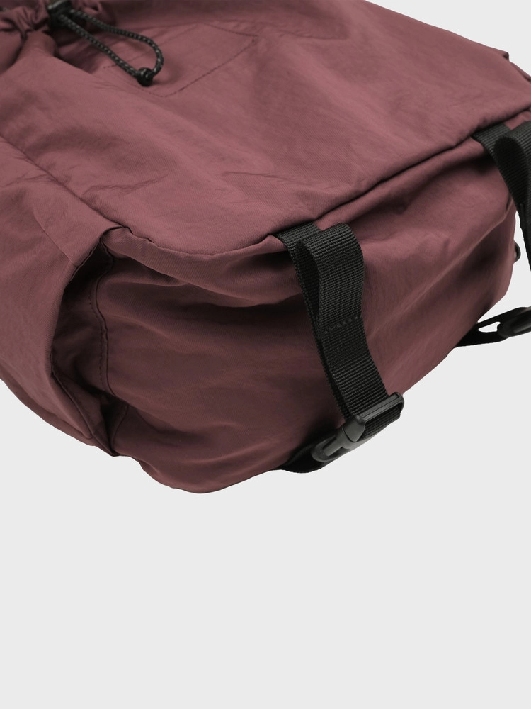 前面のストリングポケットにバッグ本体を裏返して収納できる、