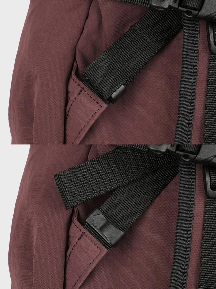 (パッカブル時にのみ見えるメインラベルは、表側にはステッチのみが見える仕様です)