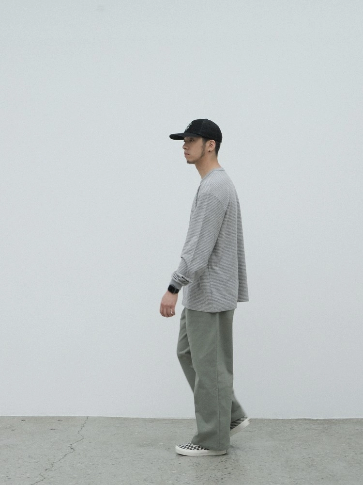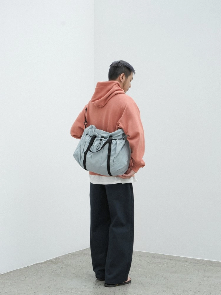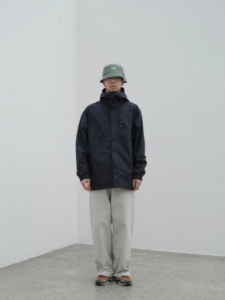 フロントポケットは、最初は少し新鮮に感じつつも、着用を重ねるほどに便利さを実感できる、エメモならではの感性を表現しています。