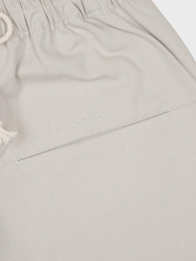フロントのジグザグ刺繍と、エメモパンツのシグネチャーであるバック右ウエストのキーループがポイント