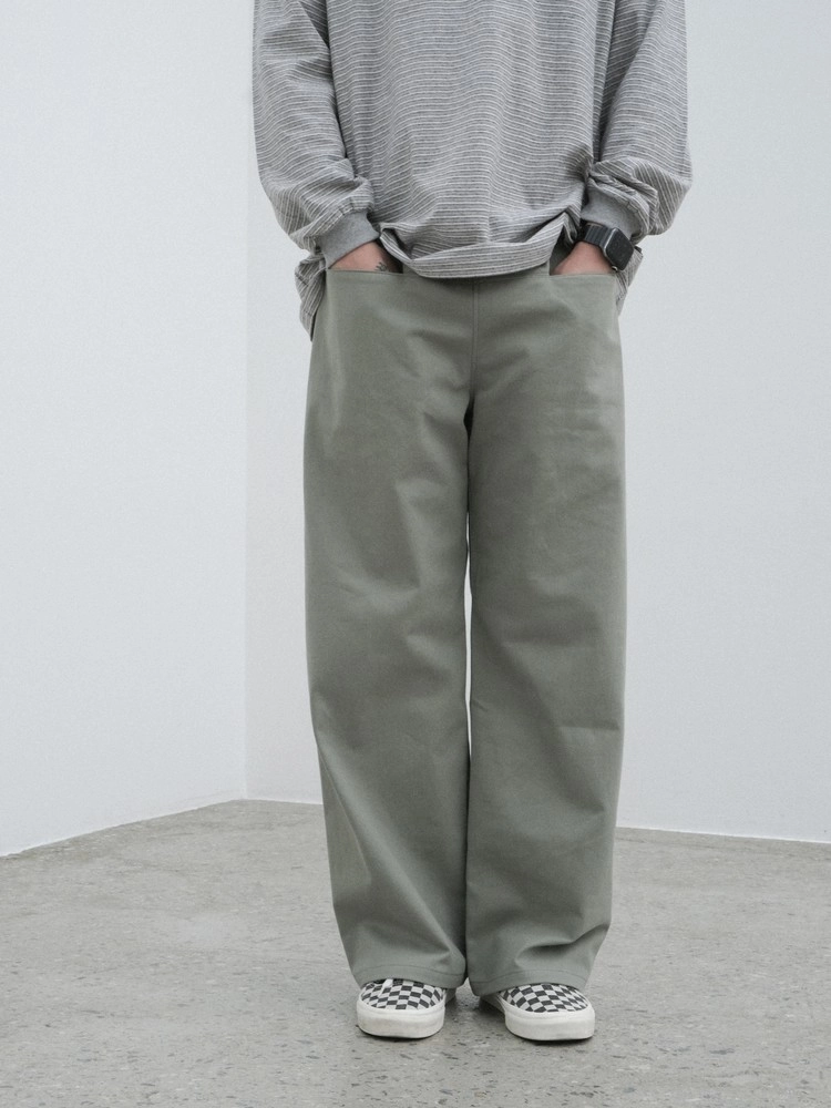 エメモ独自のパターンで仕立てた、フロントポケット仕様のワイドフィットパンツ