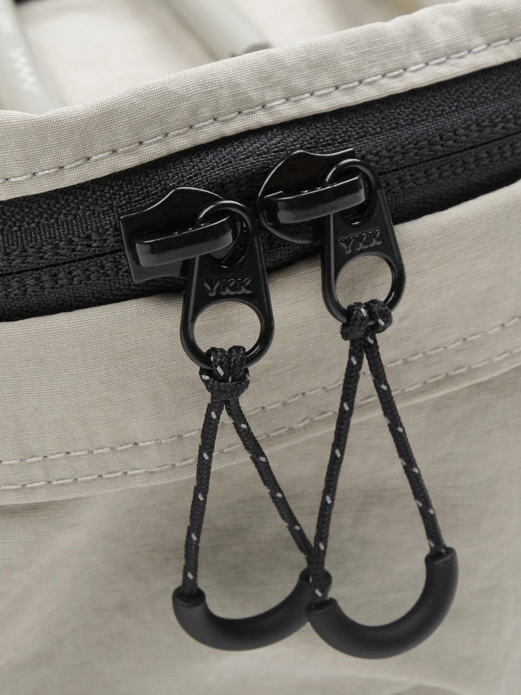 외부 양 사이드 포켓과 전면 스트링 포켓으로
